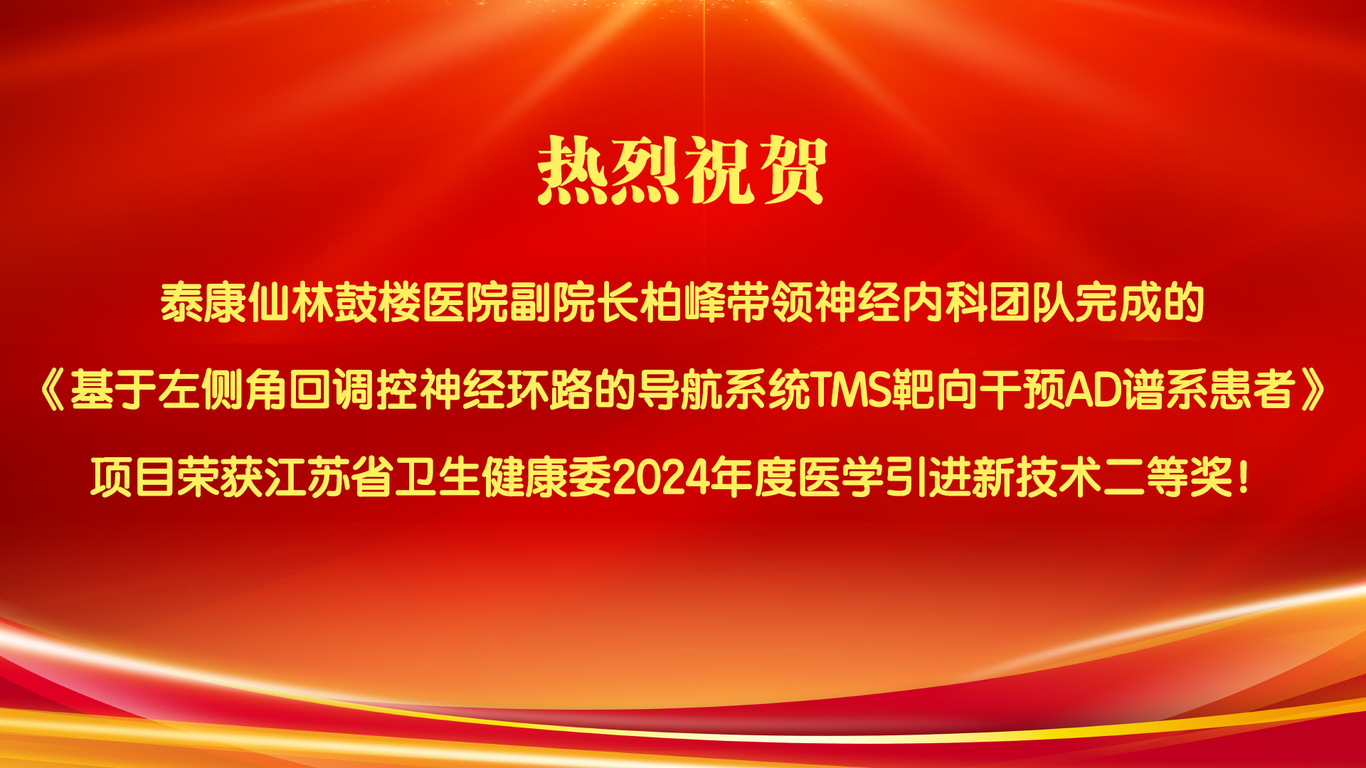 泰康仙林鼓樓醫院柏峰副院長團隊項目獲江蘇省衛生健康委2024年度醫學引進新技術二等獎